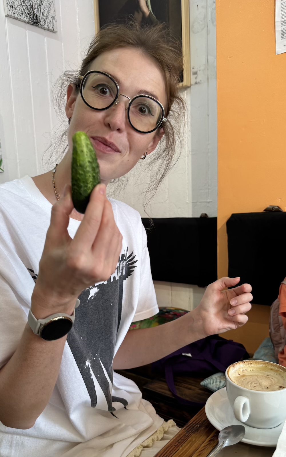 И вот на пятый или шестой наш приход за кофе, он мило подходит и предлагает мне огурец на выбор из красиво разложенных на подносе огурцов. Говорит, органик, из его сада. Я благодарю и выбираю один. В ужин впишется прекрасно.