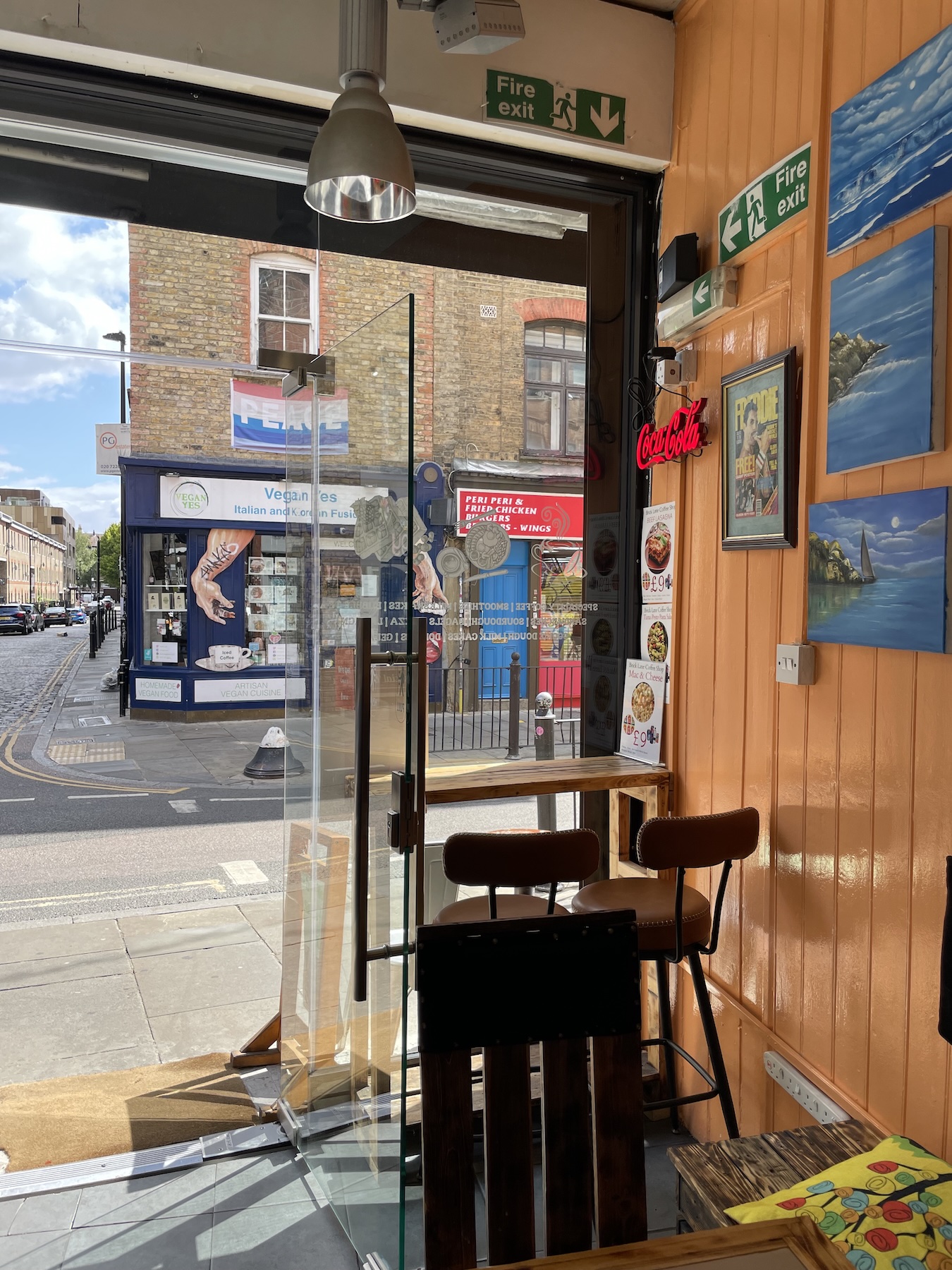 А вот и coffeeshop и сам Брик Лейн. Такой вот он — граффити и кирпич. Очень вайбово